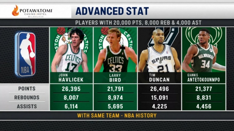 篮球比分-仅4人为同队砍2万分8000板4000助!哈弗里切克&伯德&邓肯&字母哥