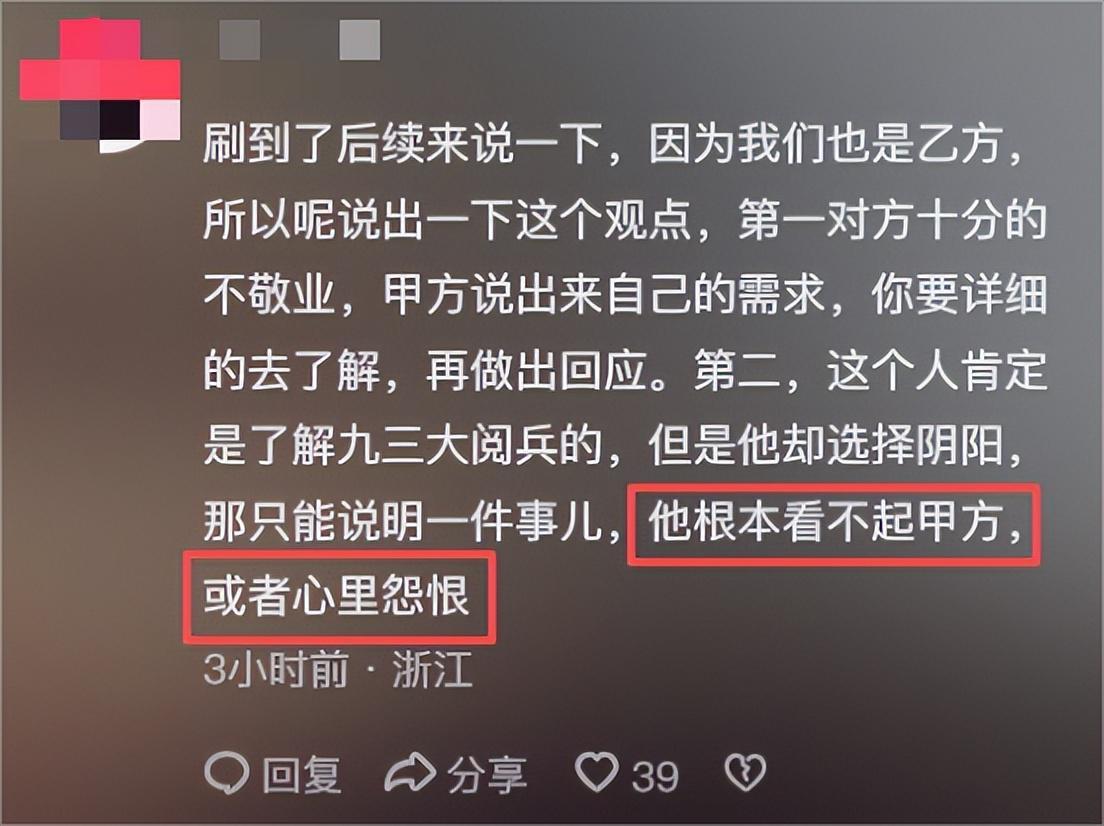 网友表示,一个乙方敢这么和甲方说话,说明他看不起或者心里有怨气。